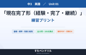 【無料プリント】中3英語 現在完了形(経験・完了・継続) の練習問題|定期テスト対策