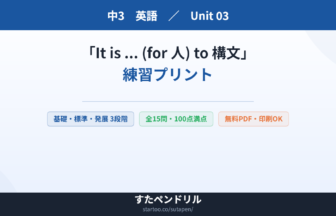 【無料プリント】中3英語 It is … (for 人) to 構文 の練習問題|定期テスト対策
